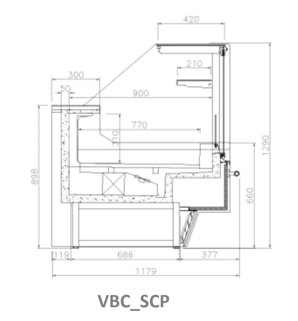 I dess breda sortiment kan du hitta modeller med böjda eller raka frontglas, alla med frontglasstruktur. Du kan också införliva vinklar och neutrala moduler utan kylning. Det finns ett brett utbud av alternativ och tillbehör. Dess utställningsyta på 770 mm och dess mellanhylla hjälper till att exponera produkten och framhäva dess kvalitet.
