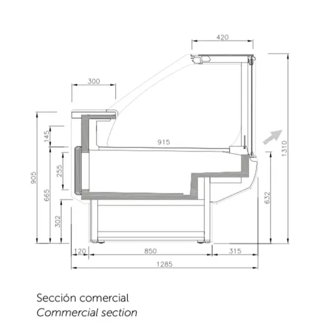 Kyldisk Europa rak front, 3750x1285x1310mm, med kylförvaring under