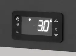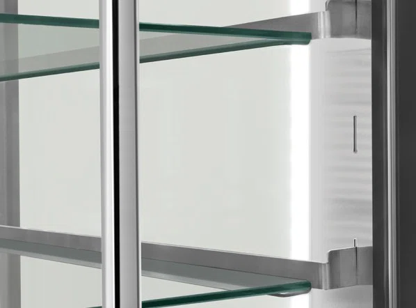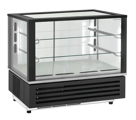 Utrustat med LED-lampor i varje hörn, härdat glas med dubbla skikt och anti-kondensbehandling. Skjutdörrar på personalsidan och två justerbara glashyllor.