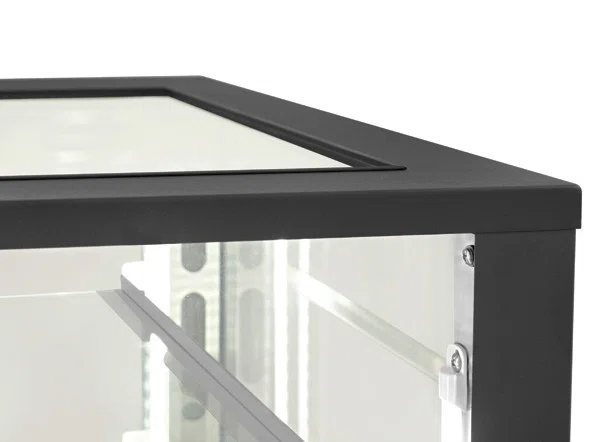Kylmonter för placering på bänk eller golv. Snygg design med ram och bas i svart pulver lackerat stål och glas.