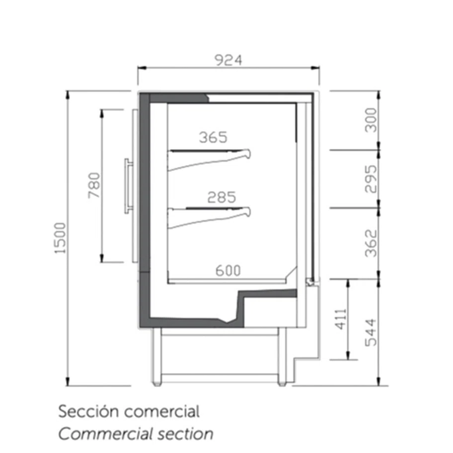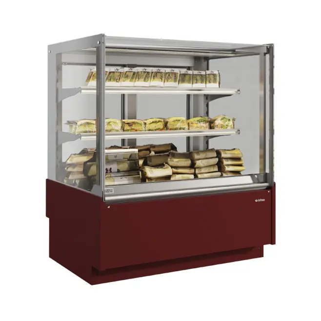 Design för traditionella serveringsskåp för kylda produkter och sallader för självbetjäning.