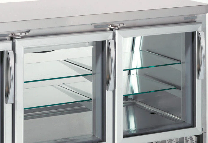 Utförd i rostfritt stål (AISI304) med smart öppningsbart frontglas som underlätter båda rengöring och påfyllning.