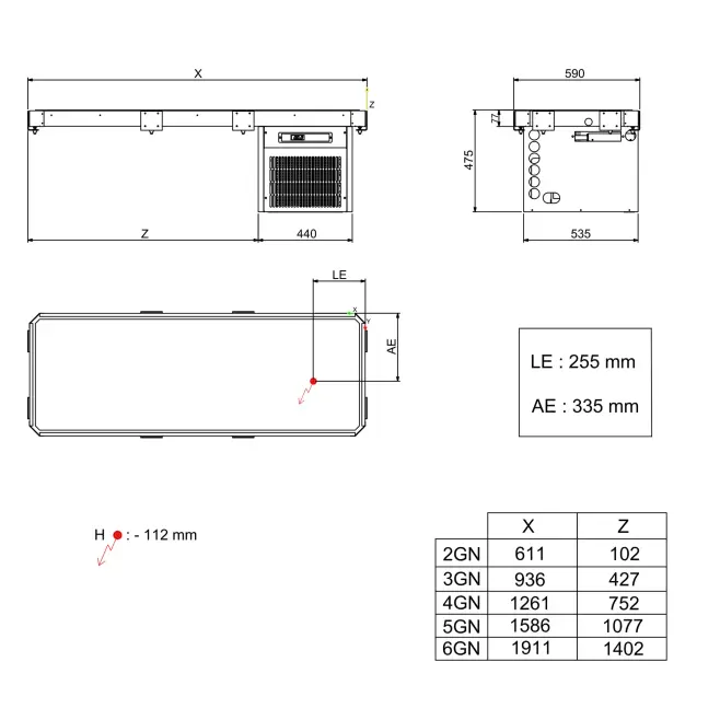 Kylplatta 3 GN – monterad under bänkskiva