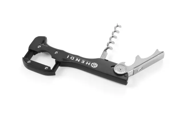 Kyparkorkskruv i rostfritt stål, 3 funktioner, spiral för långa korkar och foil cutter. Rostfritt stål.