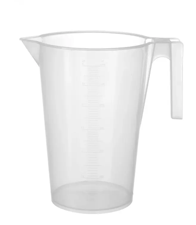 Staplingsbar mätkanna i plast med skalgradering på insdian.