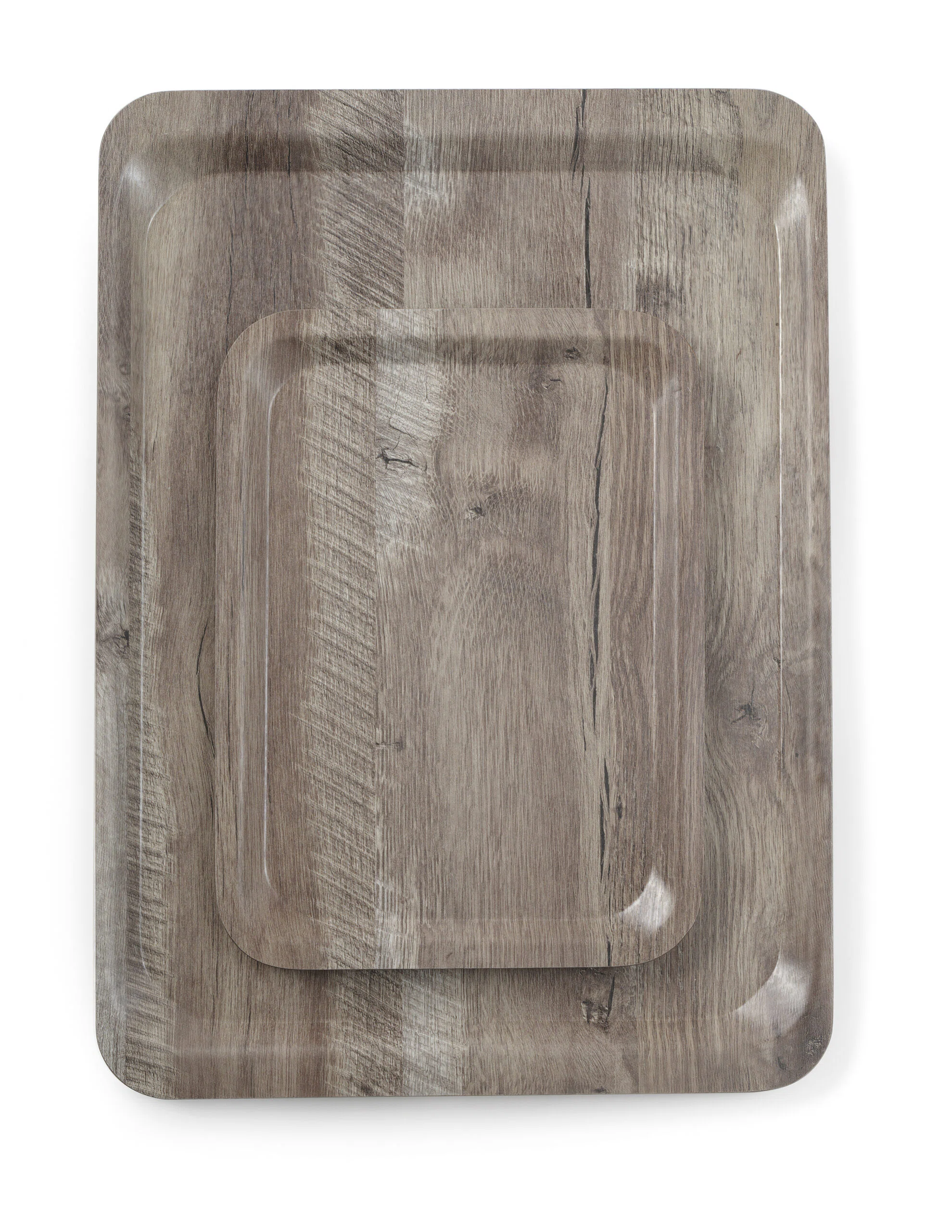 Slitstark och stryktålig bricka i melamin med tryckt träimitation. Finns i tre olika tryck. Tål maskindisk. 240x350mm