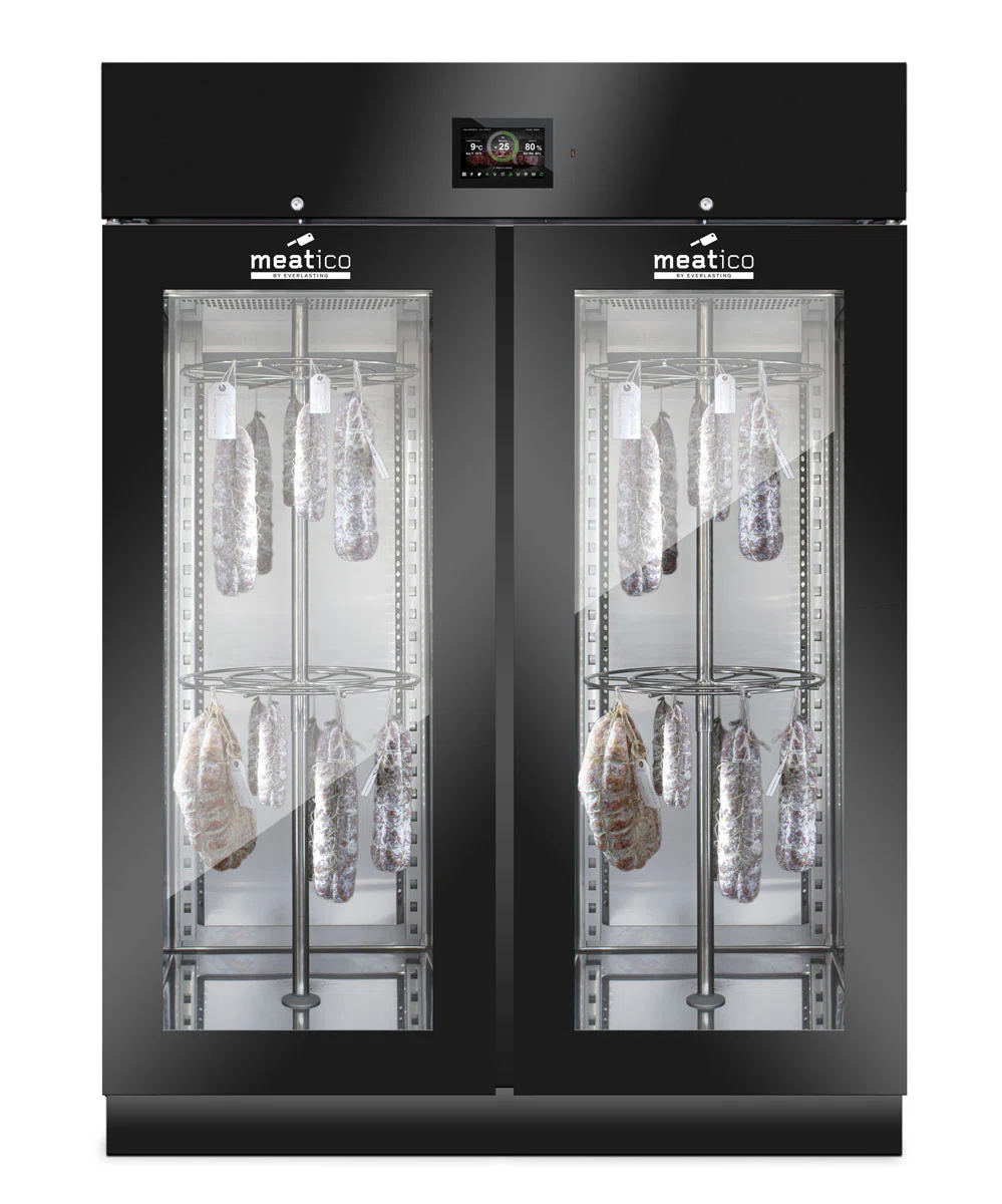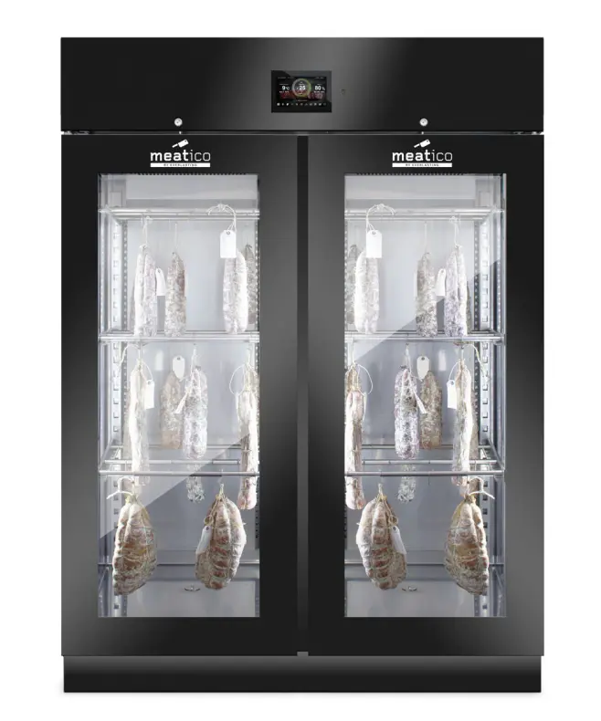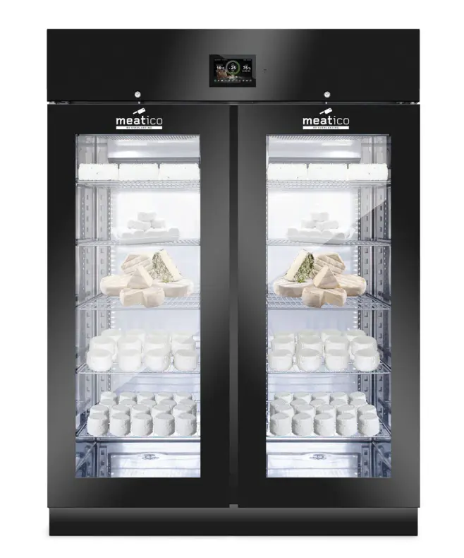 Denna modell gör det möjligt att lagra och förvara olika handgjorda produkter, t.ex. charkuterier, kött och ost. Aktiv kontroll och hantering av fukt-, temperatur- och ventilationsparametrar säkerställer idealiska förhållanden för torkning och torrlagring, med respekt för alla olika produktkrav. Produktionen äventyras därför inte av utomhusklimatets oförutsägbarhet och kan planeras året runt i full säkerhet.