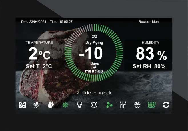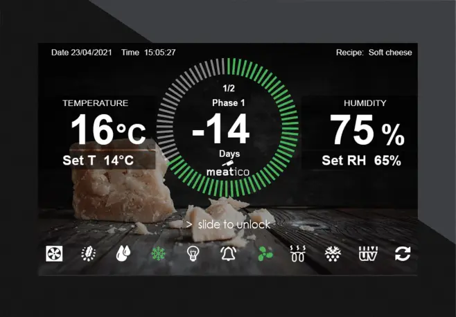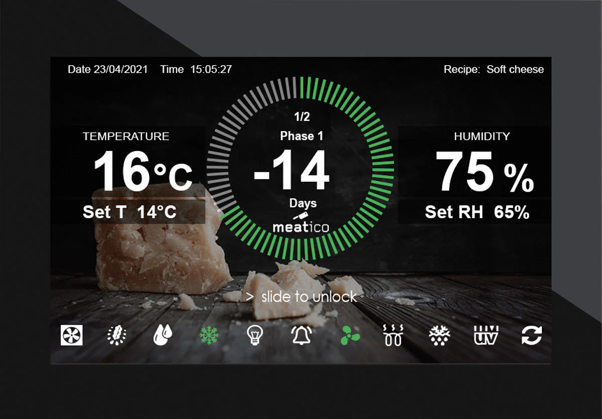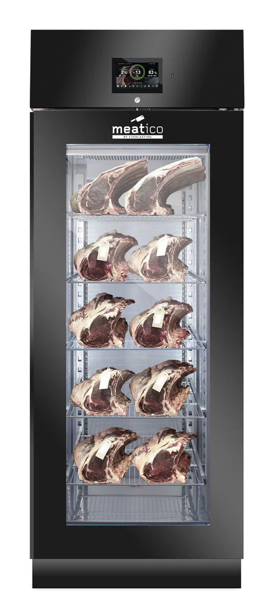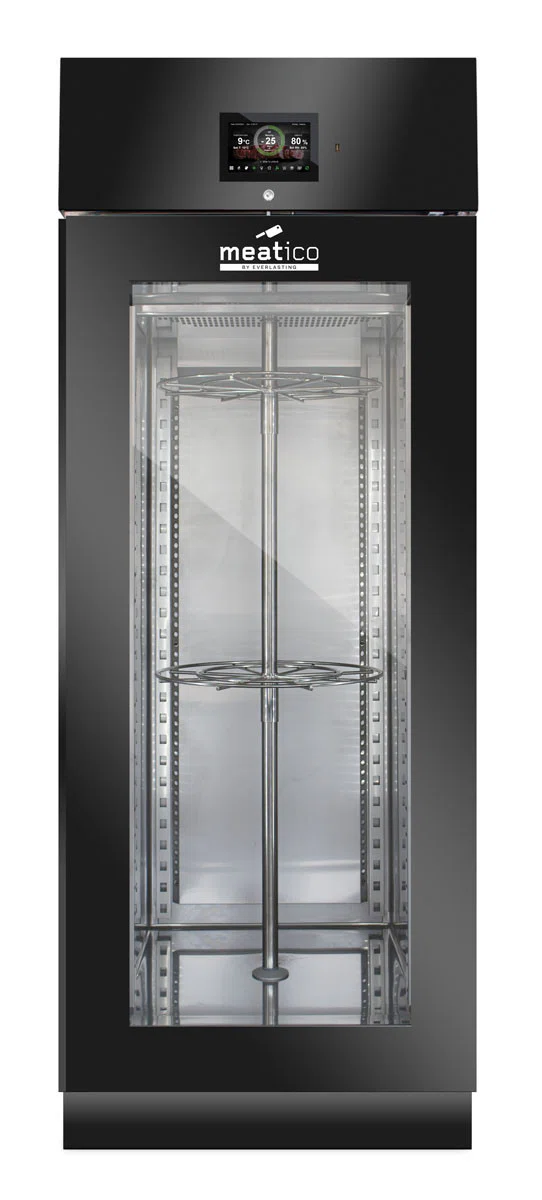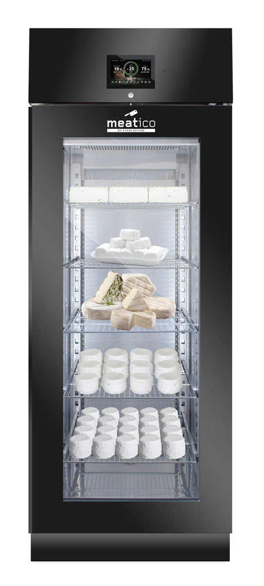 Denna modell gör det möjligt att lagra och förvara olika handgjorda produkter, t.ex. charkuterier, kött och ost. Aktiv kontroll och hantering av fukt-, temperatur- och ventilationsparametrar säkerställer idealiska förhållanden för torkning och torrlagring, med respekt för alla olika produktkrav. Produktionen äventyras därför inte av utomhusklimatets oförutsägbarhet och kan planeras året runt i full säkerhet.