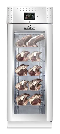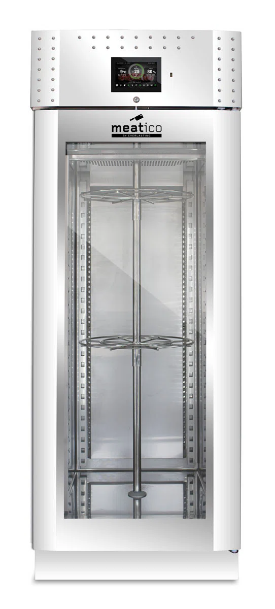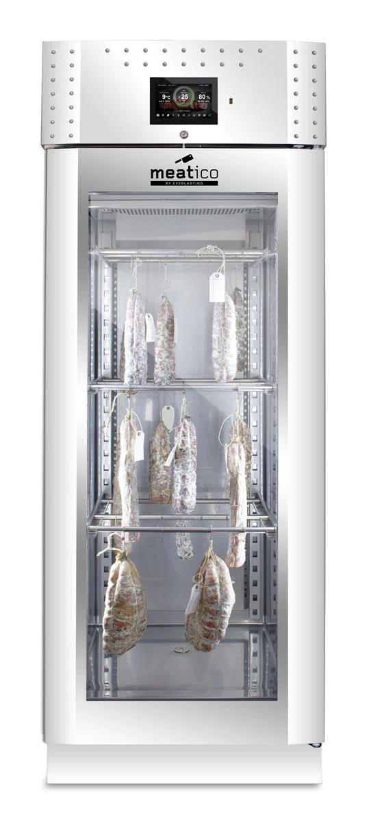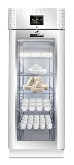 Denna modell gör det möjligt att lagra och förvara olika handgjorda produkter, t.ex. charkuterier, kött och ost. Aktiv kontroll och hantering av fukt-, temperatur- och ventilationsparametrar säkerställer idealiska förhållanden för torkning och torrlagring, med respekt för alla olika produktkrav. Produktionen äventyras därför inte av utomhusklimatets oförutsägbarhet och kan planeras året runt i full säkerhet.