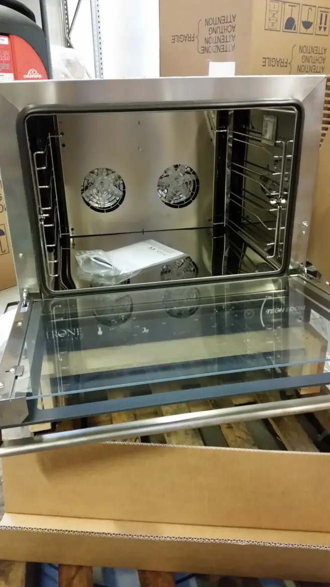 Riktigt bra liten ugn från italienska Tecnodom. Perfekt som antigen lite exra kapacitet eller som bakeoff ugn till bensinmacken, kiosken eller mindre supermarknad.