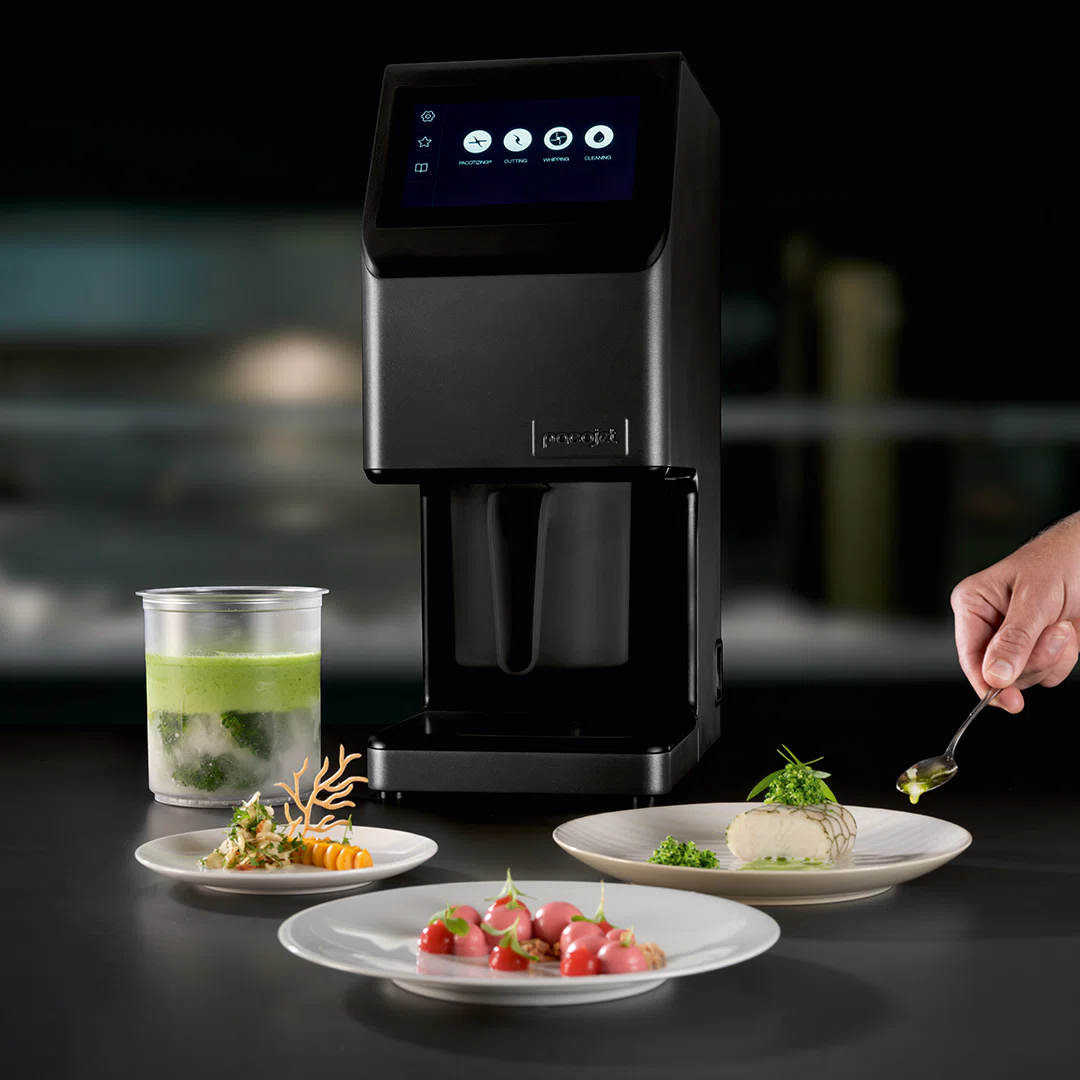 Den senaste modellen från Pacojet imponerar med sin tysthet och effektivitet. Den är som sin föregående modell men med betydliga förbättringar och något alldeles extra. Pacojet är mest känt som en glassmaskin, men den kan användas för att skapa sorbet, glass, mousseline, mousse, soppor, koncentrat, degar, smetar och mycket mer. Huvudprincipen är att maskinens knivblad mikropurear både färska och djupfrysta ingredienser till en så slät konsistens som är möjligt. Detta frigör smakerna i deras renaste och mest utsökta form och skapar en unik smakupplevelse.