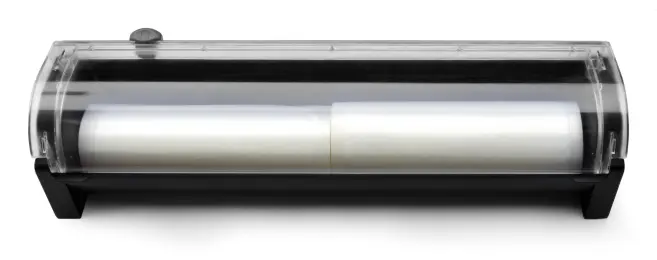 Utrustad med en flexibel kniv som gör att man kan klippa exakt den storleken man behöver. För rullar upp till 100×400 mm. Kan fästas på vakuummaskin Kitchenline 975374 eller fristående till andra vakuummaskiner.