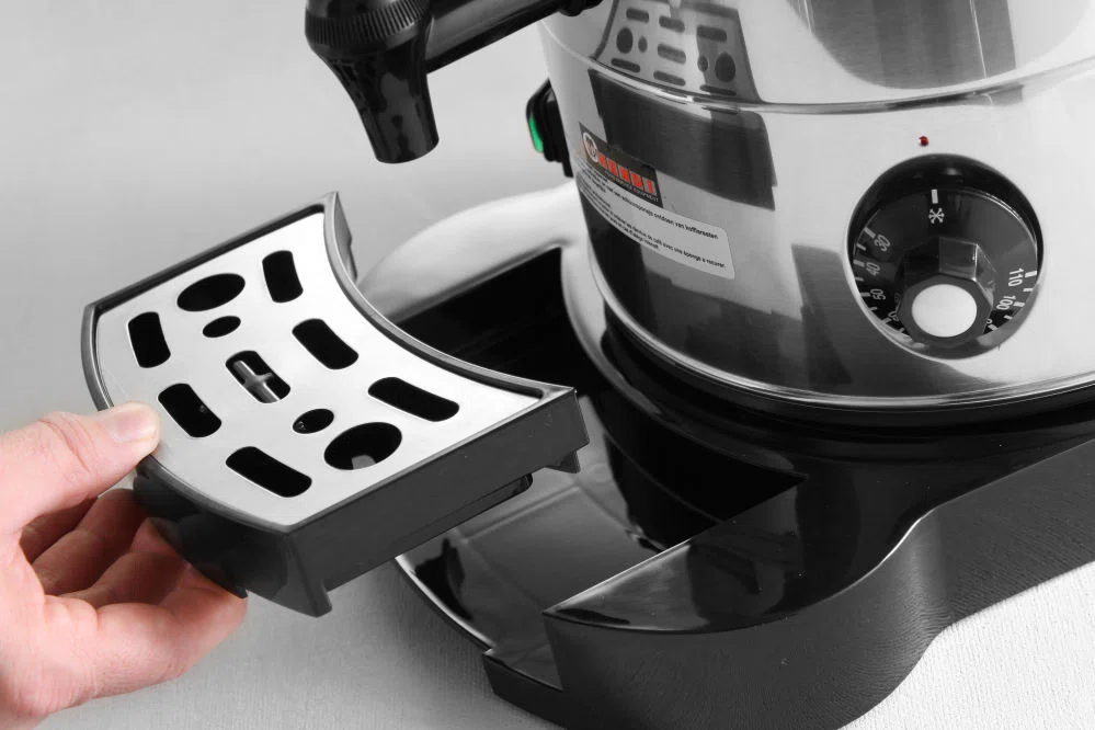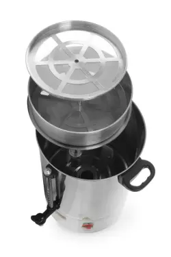 Perkulator 6 liter, med isolerad dubbelväggig struktur i polerat rostfritt stål minskar värmeförlusten. Upp till 20 % lägre energiförbrukning jämfört med liknande enkelväggiga perkulatorer. Behållare och tank i rostfritt stål. Svetsade handtag i rostfritt stål med silikongrepp. Utrustad med droppskyddskran, avkalkningsindikator och droppskål med galler i rostfritt stål. 230V 1550W.