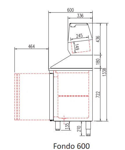 – 2 dörrar: 1495x600x850mm – Komplett med kylränna för 6x GN 1/4
