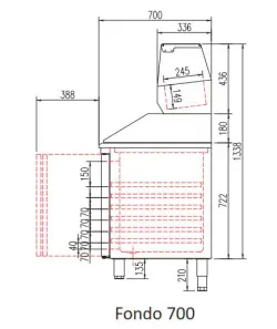 – 4 dörrar: 2245x700x850mm – Komplett med kylränna för 10x GN 1/4