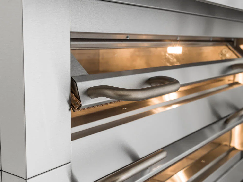 Robust ugnslucka med ergonomiska, rostfria, blästrade och svala handtag samt stor keramisk glasruta för god sikt in i ugnen. Högre ugnsrum med en öppningshöjd om 16 cm, vilket ger en bättre arbetsmiljö