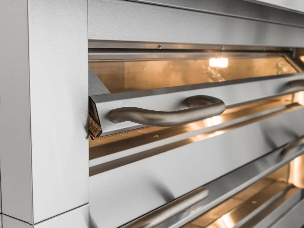 Pizzaugnens dubbla halogenbelysning och keramiska glas i luckorna ger en god överblick av pizzorna under gräddningen. Den lättanvända panelen med turbostart, veckotimer och effektvakt gör bakningen mycket enkel och imkåpan underlättar för bagaren vid öppning av luckan, då den effektivt leder bort ånga.