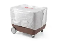 Garanterar säker transport av porslin. Mobila skydd av polyeten gör det möjligt att lasta tallrikar i olika storlekar. Extremt robust konstruktion av polyeten skyddar porslinet från att skavas eller gå sönder. Antal tallrikar i stapel: 6. Antal tallrikar per stapel: 50. Hjul som är tåliga mot ojämnt underlag och inte lämnar märken även vid full belastning. Två länkhjul med broms Ø10 mm, stora hjul Ø20 mm. Stöt- och slagtålig. Vinylöverdrag för att uppfylla strikta sanitära standarder ingår. Tallrikar med diameter från Ø170 till Ø330 mm.