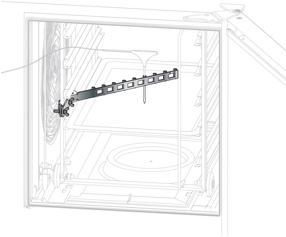 Positionsstöd för kärntermometer. Bra att ha vid temperaturmätning av flytande livsmedel.