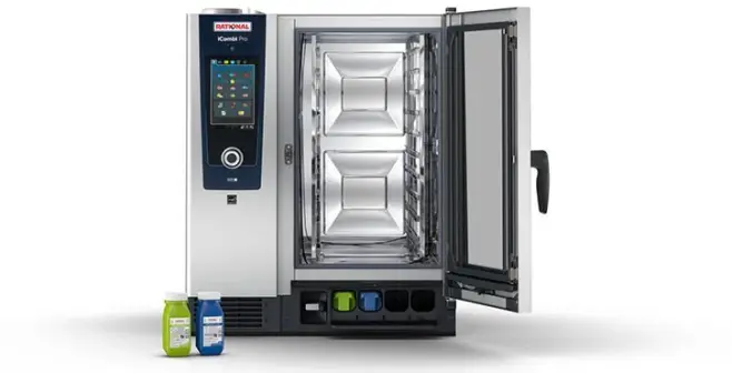 RATIONAL erbjuder nu tillvalet iCareSystem AutoDose för iCombi Pro bordsmodeller, med möjligheten att starta rengöringen autonomt och utan att någon medarbetare behöver göra något alls. Detta sker antingen vid en önskad tidpunkt, t.ex. alltid efter stängningsdags, eller när det passar in i dagens rutiner. I inställningarna kan rengöringar enkelt programmeras separat för varje dag efter användning eller enligt ditt veckoschema. Detta är möjligt tack vare patroner med fast rengöringsmedel som är integrerade i maskinen. Rengörings- och underhållsmedel behöver inte doseras för varje rengöring. Det ökar arbetssäkerheten, sparar tid och garanterar HACCPhygiensäkerheten. Förutom hygien är underhållssäkerheten ytterligare en fördel med iCareSystem AutoDose: Den automatiserade rengöringen sparar in på kontroller och kostnader och säkrar den löpande driften genom att öka driftsäkerheten.