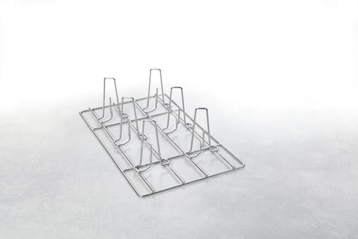 Eftersom kyckling och anka placeras upprätta blir bröstköttet särskilt saftigt och skinnet krispigt med jämn gyllenbrun färg.