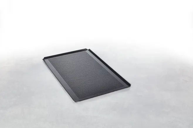RATIONALs bakplåtar i aluminium har en väldigt bra antistick-yta och är både extremt robusta och extremt hållbara. Antistickbeläggningen TriLax ger maten extra fin färg och kan användas vid temperaturer på upp till 300 C.