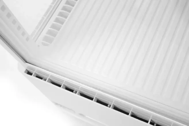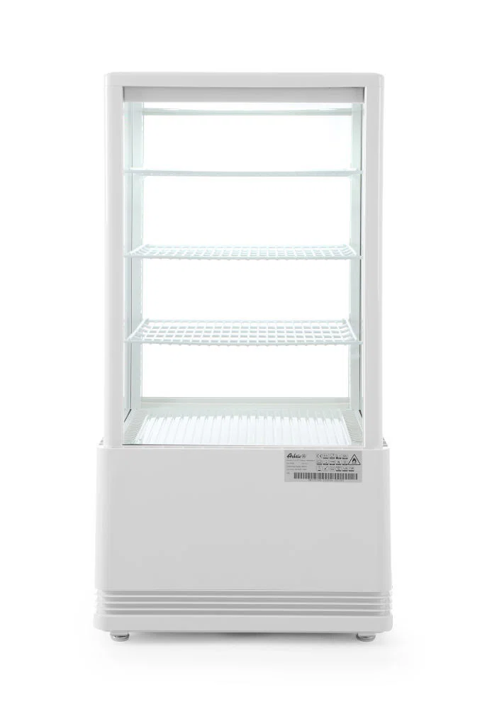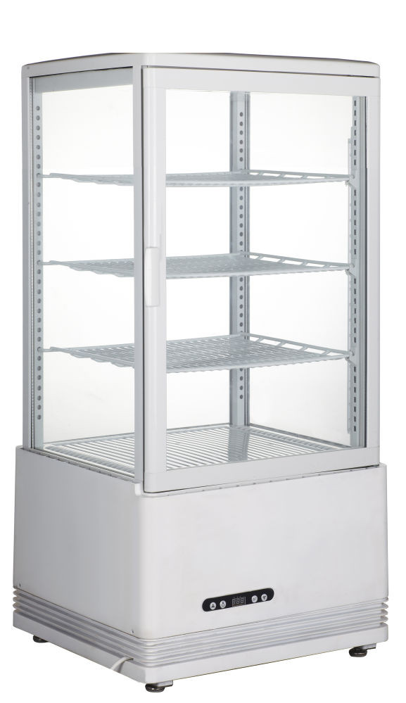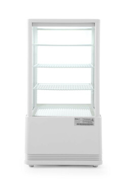 Housing made of coated stainless steel fitted with double glazing. Forced air cooling with auto-defrost, compressor placed underneath the chamber. Air duct outside of the glass blows air over the glass to remove and prevent condensation. Durable PVC coated shelves, adjustable in height. With bright LED lighting in the ceiling. Digital temperature controller and display. Temperature range: 2 to 6°C. Climate class: 4 Refrigerant: R600a.