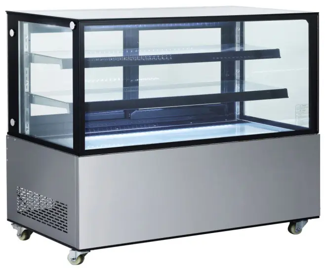 Housing made of stainless steel fitted with double glazing. Accessible through two sliding doors at the back. Forced air cooling with auto-defrost, compressor placed underneath the chamber. With bright LED lighting at the top and under each shelve. Fitted with 4 castors of which 2 have brakes. Digital temperature controller and display. Temperature range: 2˚/6˚C. Climate class: 4 Refrigerant: R290.