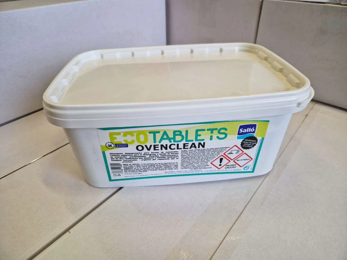 Specialtabletter för avfettning och diskning av självrengörande konvektionsugnar. Högpresterande, superkoncentrerade tabletter som lätt löser upp och avlägsnar eventuella organiska beläggningar, även om de är brända. Används tillsammans med Ovenbrite (sköljmedel för självrengörande varmluftsugnar). Lämplig för användning inom livsmedelsindustrin.