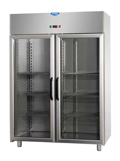 Italiensk 1400L rostfritt restaurangkylskåp med glasdörrar AF14EKOMTNPV.