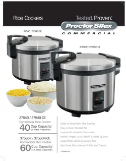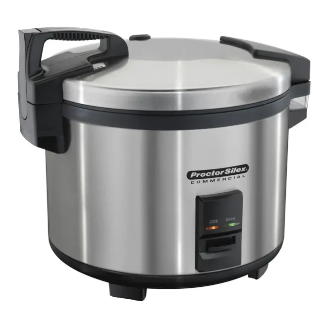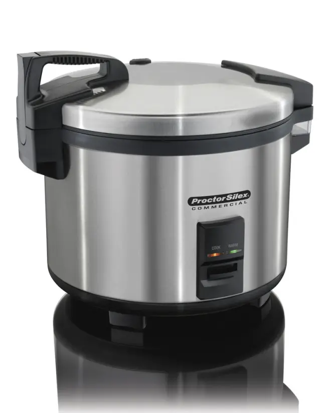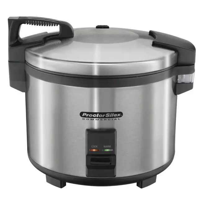 Riskokare Proctor Silex från Hamilton Beach. Ger 60 portioner kokt ris / 4,9 kg obehandlat. Rymmer 14 liter. Lätt att rengöra. Isolerad väggkonstruktion med dubbla väggar som håller riset i serveringstemperatur.