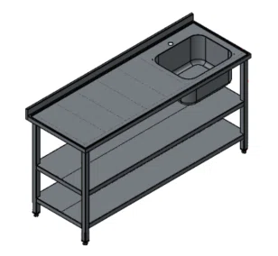Det finns diskbänkar utan hyllplan, diskbänkar med fasta rostfria hyllplan och diskbänkar som är förberedda för ”sektionshyllor”.