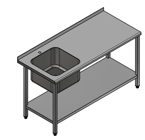 Diskbänkarna och arbetsbänkarna samt bänkskivorna är robusta, stabila och svetsade. Tillverkas med förstärkningar i rostfritt på undersidan och levereras även med vattentät underlimmad träskiva/träkärna. Träskivan ger en starkare och tystare arbetsyta.