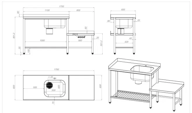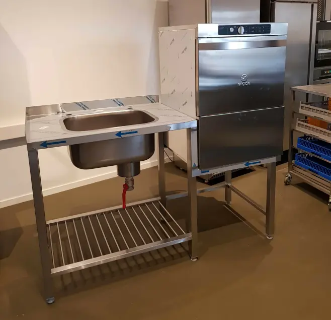 Smart rostfri diskbänk med ergonomisk ställplats för underbänksdiskmaskin. Komplett med silhink, kulventil och vulstkant. Standardstorlek kan du välja i menyn men diskbänken går också att skräddarsy efter era behov. Om du vill ha specialmått hör av dig till oss.