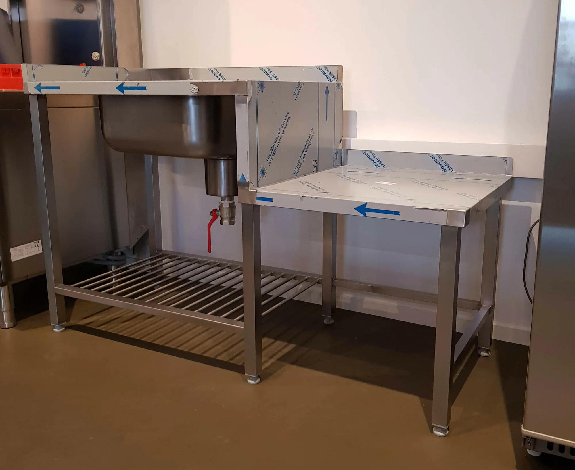 Rostfri diskbänk med ställplats
