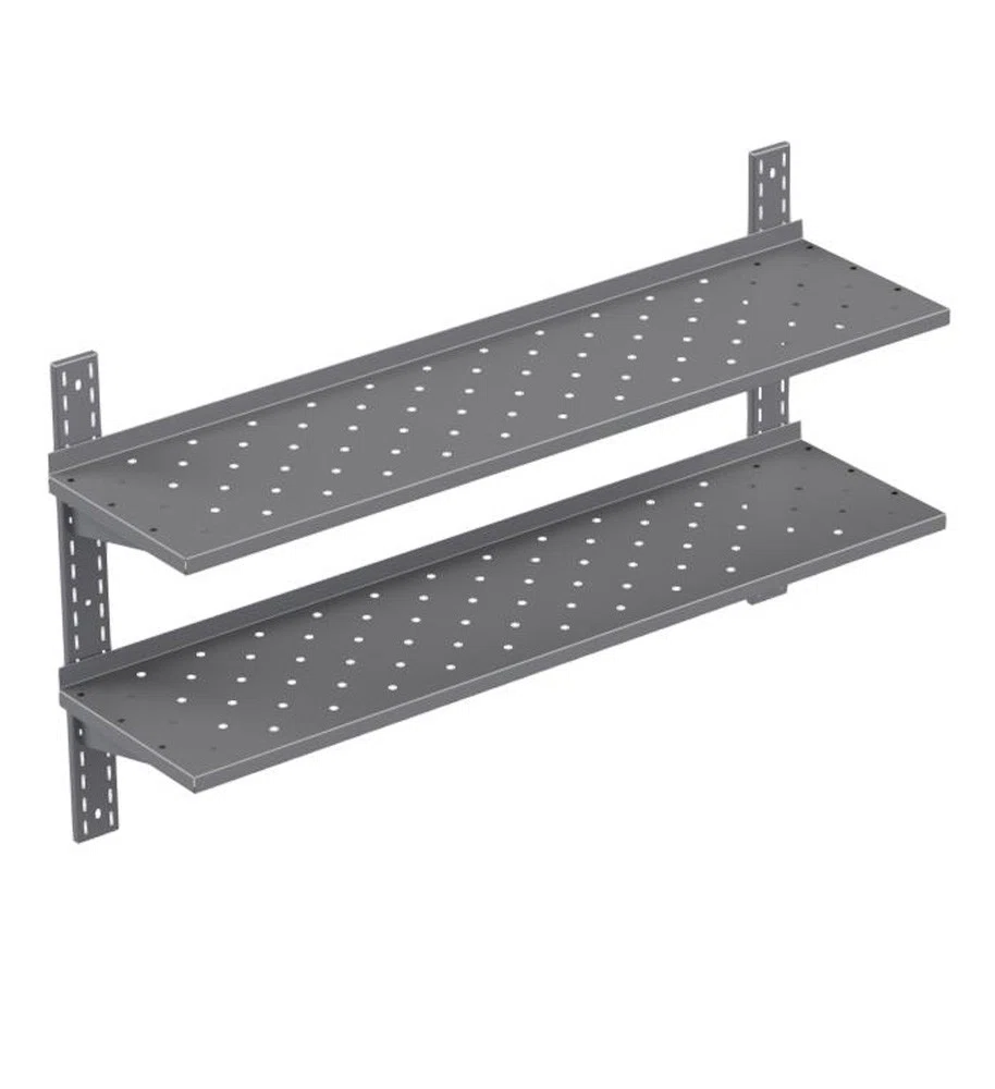 Rostfri dubbel perforerad vägghylla med rostfria skenor – måttbeställd