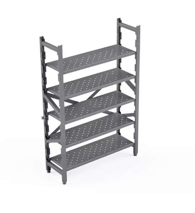 Rostfri hylla med 5 justerbara perforerade hyllplan – krysshylla – måttbeställd