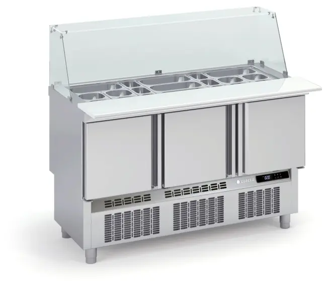 Salladskyl i rostfritt utförande med utdragsbar skärbräda och hostskydd – snygg och kompakt