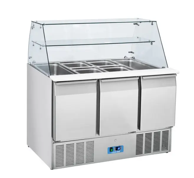 Snygg rostfri salladskyl med glas och kapacitet för 4GN 1/1