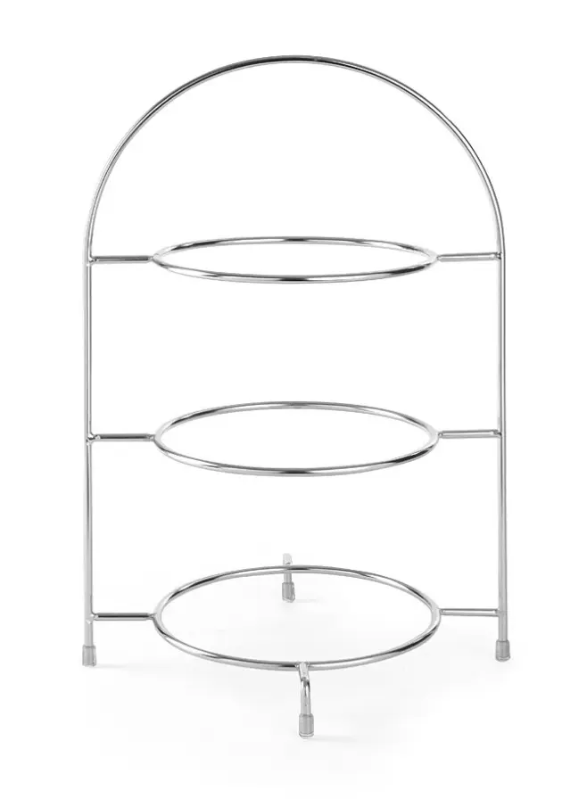 Serveringsställ i 3 plan för tallrikar i krom. Perfekt för servering av små tilltugg eller afternoon tea. Handdiskas. Passar till tallrik om max 275mm.