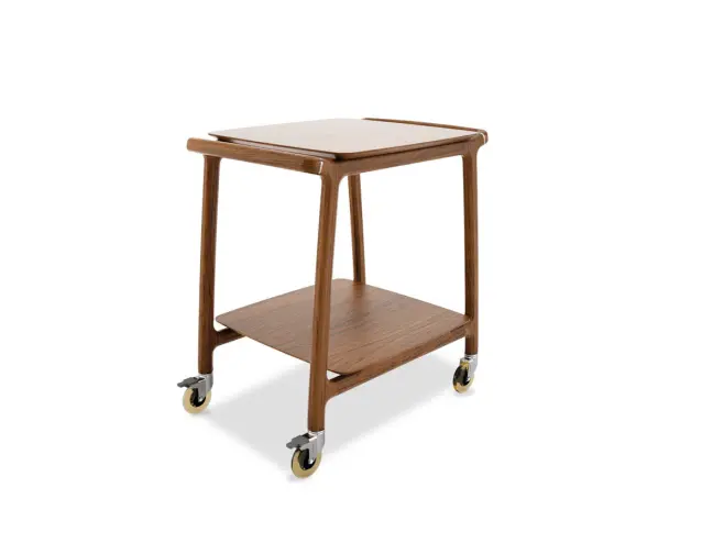 En ny serie vagnar med 2 hyllor i massivt trä med en elegant och modern design. De är utsmyckade med små detaljer som metalldetaljer på handtagen och lister på hyllorna. 4 svängbara hjul som standard.