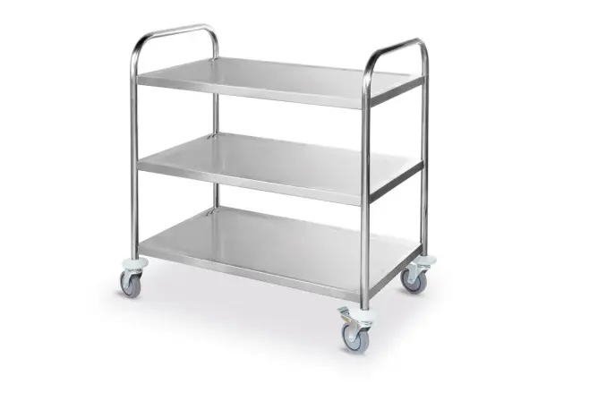 Robust och starkt serveringsvagn i 100 % rostfritt stål – klarar upp till 50 kg per hylla!