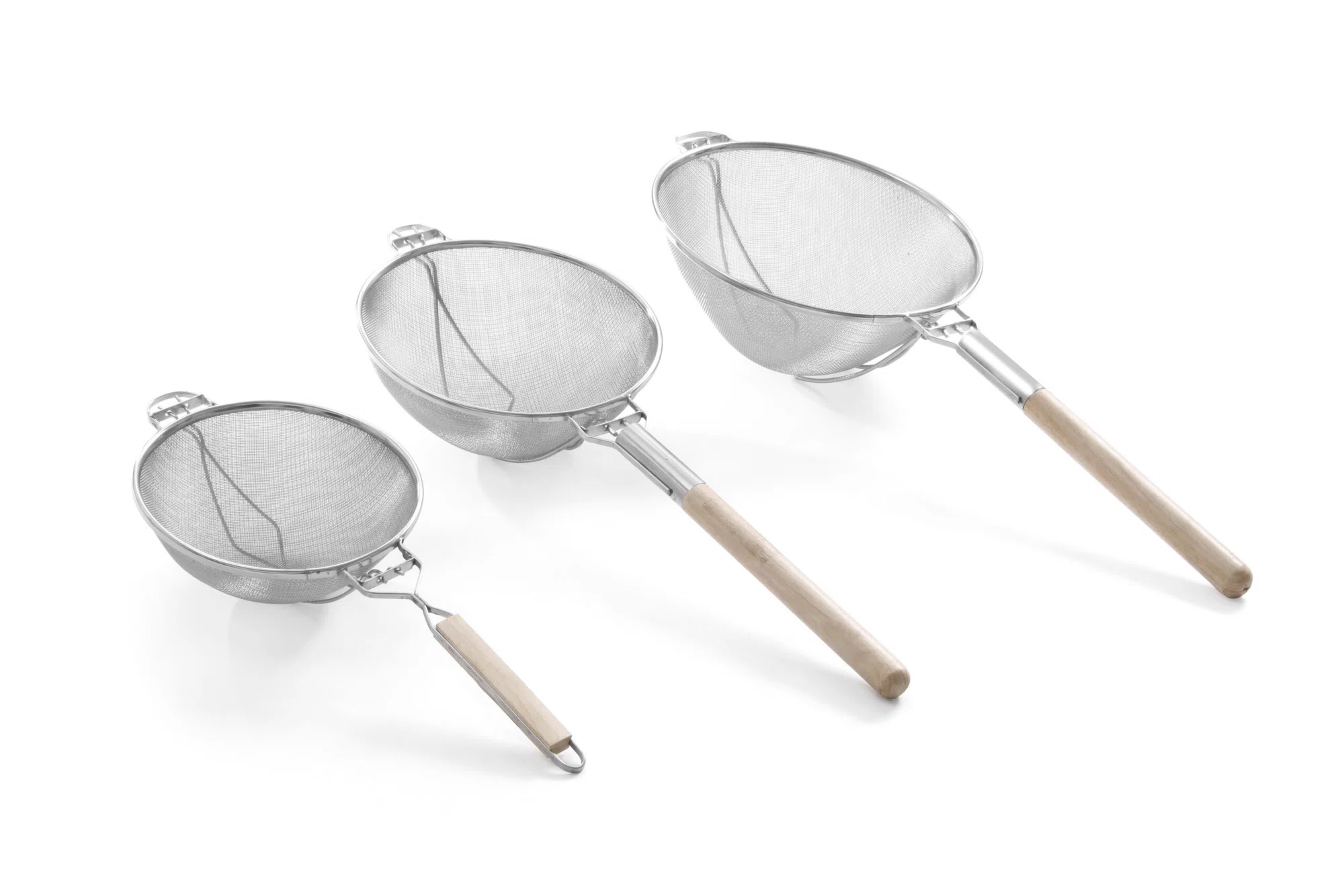 Förtennad, dubbelnätad siktsill med trähandtag och förstärkt konsol. Handdiskas.
