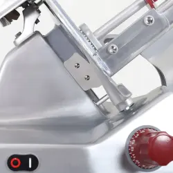 Berkel har utrustat modellen med ergonomiska reglage, tydliga LED-brytare och skydd i transparent polymer för full kontroll vid användning. Den automatiska spärren hindrar oavsiktlig start under rengöring.