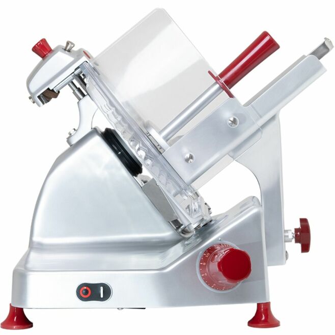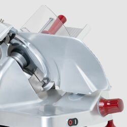 Kraftfull motor (0,35 kW) och 300 mm skärblad i rostfritt stål – klarar både charkuterier, kött och ost med professionell precision.