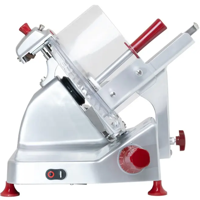 • Kraftfull motor (0,35 kW) och 300 mm skärblad i rostfritt stål – klarar både charkuterier, kött och ost med professionell precision.
