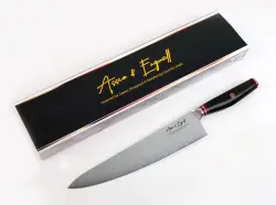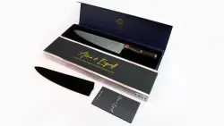 Denna kniv är tillverkad med japanskt AUS10-stål, vilket ger den överlägsen hållbarhet och skärpa som passar för både yrkeskockar och ambitiösa hemmakockar.