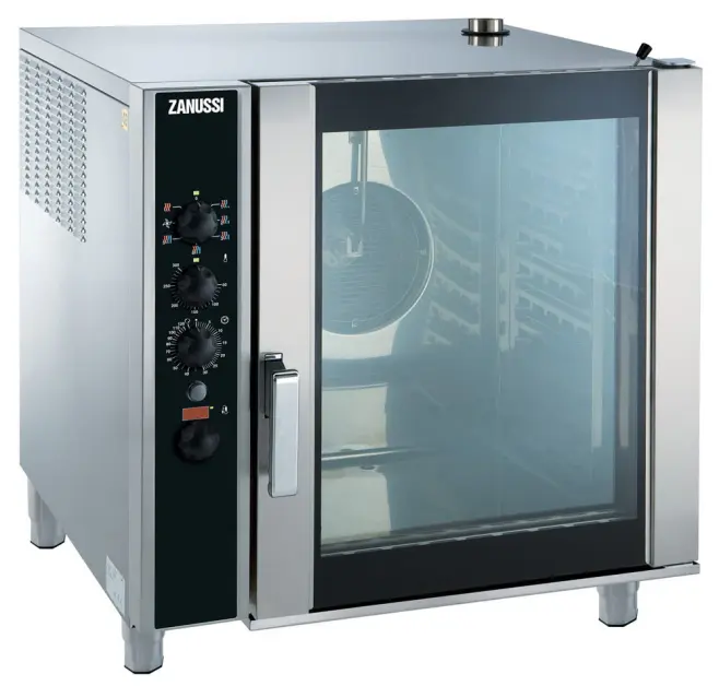 Smart Steam konvektionsugn försedd med injektionsånga. Alla externa paneler, dörr, sidor och topp i 304 AISI rostfritt stål. Ugnsutrymme, gejderställning och fläktsköldar i 304 AISI rostfritt stål. Dörrlucka i dubbla glas för värmeisolering med öppning i två steg och dropplist med automatisk avrinning. Ugnsutrymmet har rundade hörn och belysning. Varmluften i ugnen ventileras via Flow Channel system för jämn värmefördelning. Värme skapas via Incoloy-armerade element placerade tillsammans med fläkt i ugnsutrymmets bakkant. Elektomekanisk termostat; temp kan ställas från 30°C till 300°C. Timer från 0 till 120 min med ljudsignal när tiden är slut. Ånginjektion i 5 steg, från låg fuktighetsnivå upp till ca 80% mättnadsgrad i maxläget. Kärntermometer med en sensor i spetsen inkluderad som standard. Gejderställning med plats för 10 st 1/1 GN kantiner ingår. Gejderställningen har ett avstånd på 60 mm mellan gejdrarna.