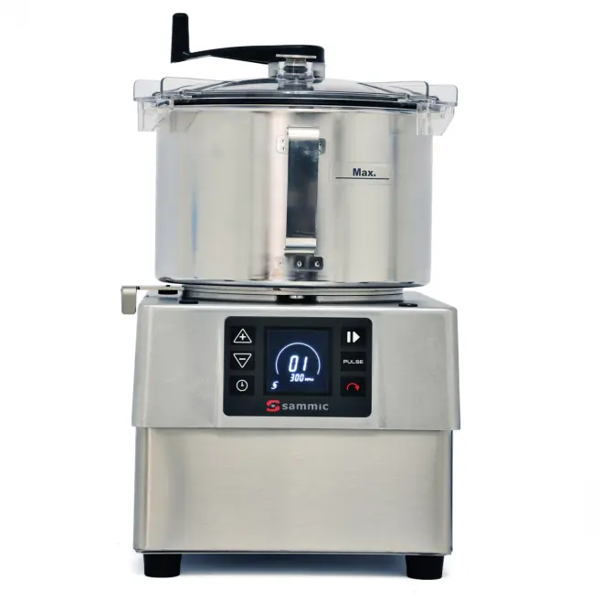 – 5,5 liters behållare i rostfritt stål. Lock i polykarbonat med inbyggd ”cut & mix” skrapblad.