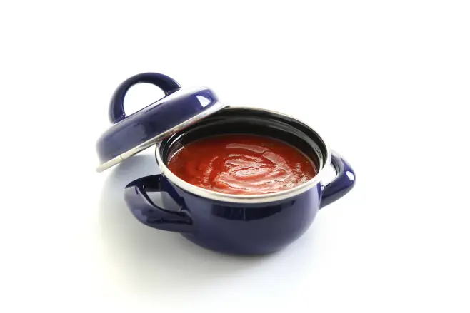 Emaljerad soppskål med lock. Diskmaskinssäker.
